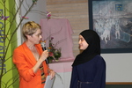 sie am Montag von der Schulgemeinschaft mit viel Wärme verabschiedet wurde. Die beiden Schulsprecher Sedrat Kashkoush und Emir Demirkaya überreichten ihr einen Bilderrahmen mit Blumenketten. Darin